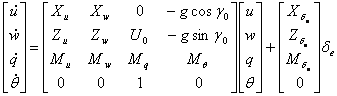 in care x este vectorul de stare, A este matricea de stabilitate, B este matricea de comanda, iar δ este comanda (care se va considera ca fiind bracajul de profundor δe