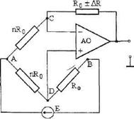 Fig. . Structura puntii dezechilibrate cu o latura activa avand tensiunea de iesire liniara cu variatia rezistentei senzorului