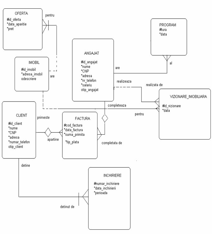 Se realizeaza un management asupra datelor esentiale gestionate de o agentie imobiliara :managemet de imobile de vanzare(descriere,preturi), management de imobile cumparate,de inchirieri, pana la vizitele efectuate de agentii imobiliari unor imobile, in vederea administrarii lor.