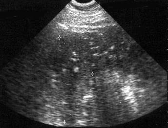 In mod particular, hematoamele foarte recente pot avea ecogenitate relativ crescuta. In hematoamele subacute, hipoecogene, se vizualizeaza uneori mase cu ecogenitate variabila, date de cheaguri.