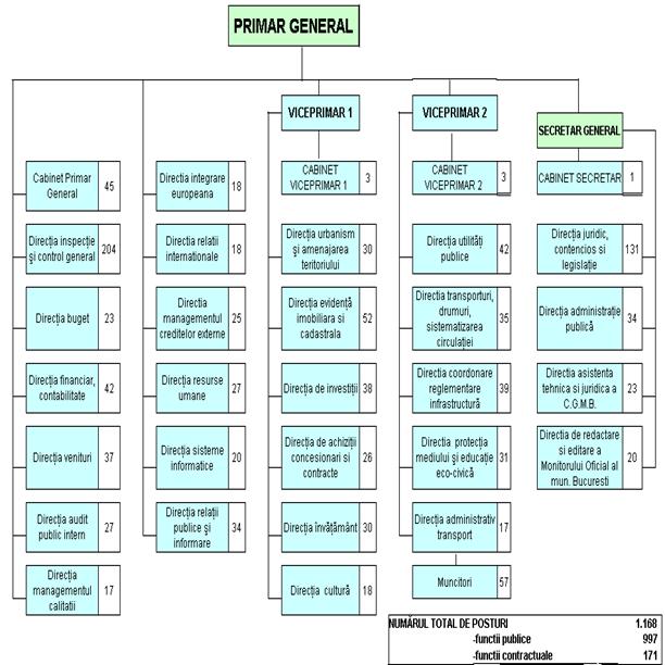 Organigrama Primariei Municipiului Bucuresti se prezinta astfel: