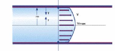 Laminar flow is characterised by a situation in which the fluid particles flow in regular layers of different velocity. The flow is quite orderly. In a long cylindrical tube the flow velocity at distance r from the axis of the tube can be represented by [2,3]